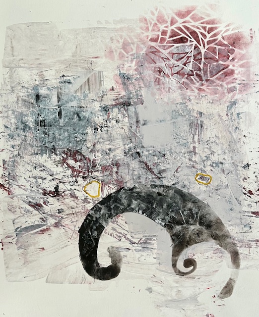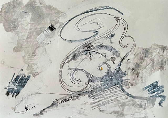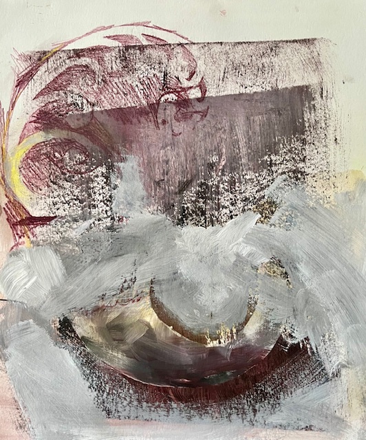 In Frankrijk heb ik deze serie gemaakt in juni 2025 tijdens een schilderretraite. Het is voornamelijk werk op papier waarin vrijheid, flow en synergie voorop staan. Uitgangspunt was een stilleven met een gedroogde gekrulde varen. Formaat ongeveer 30 X 40 cm.